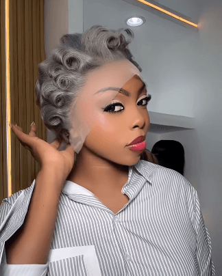 Ash grey wig mercy prestyled pixie full frontal human hair available at ksh 2500 πΈCan be worn glueless/glue πΈCan be curled