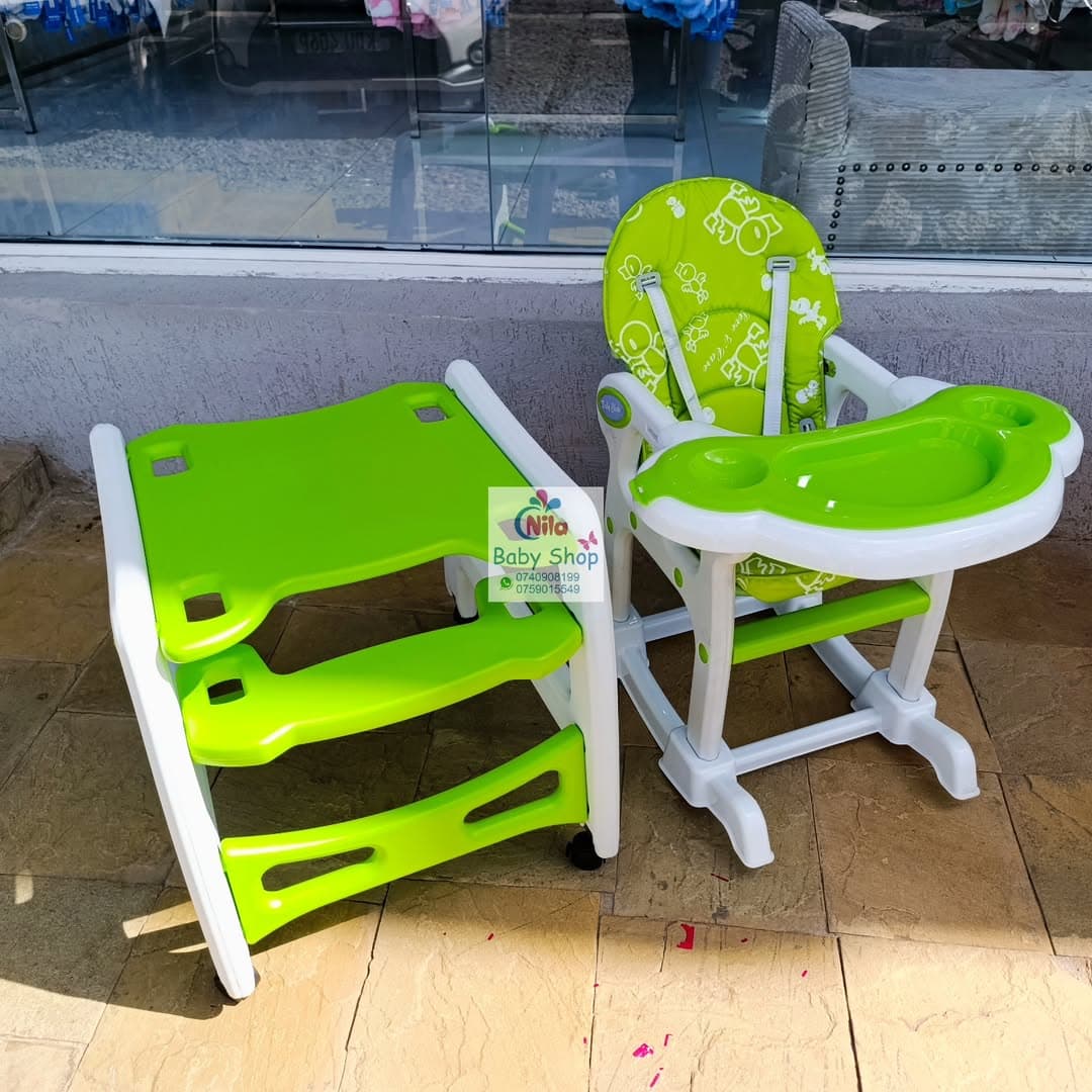 Converts from a high feeding chair to a low chair and table